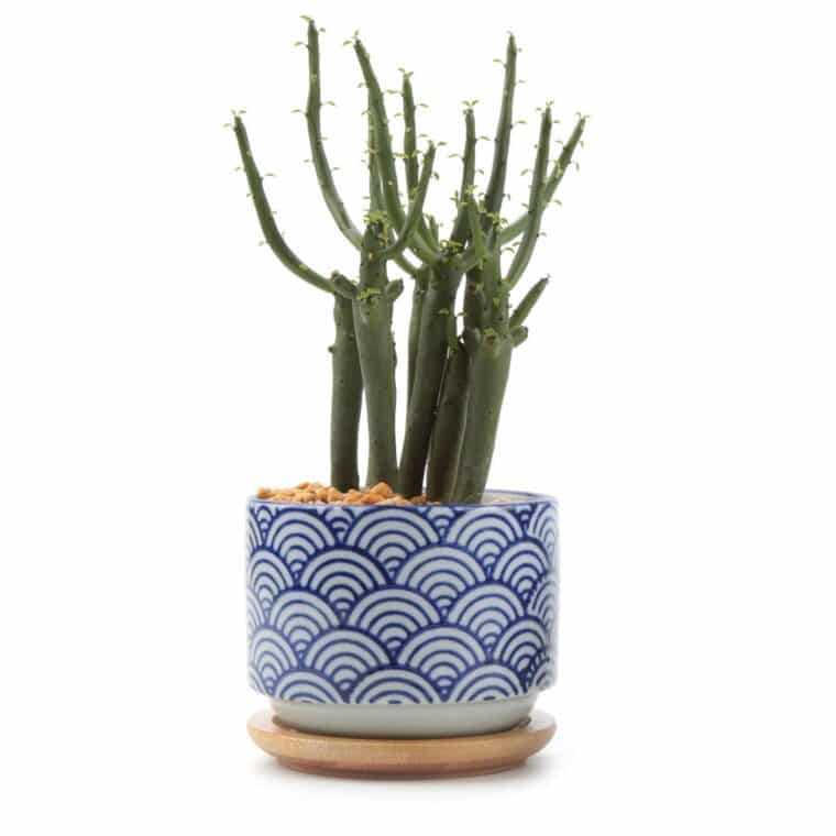 If you want to bring a slight touch of Japan to your home, this small ceramic pot will make a perfect home for your succulents, herbs, or cacti. Being modest in design with unique wavy blue patterns, they will make any windowsill or desk look refreshing and charming. With a drainage hole on the bottom, your plants will breathe without problems.