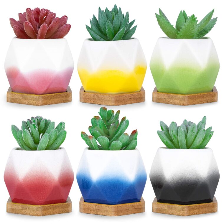 With unique hexagonal design and vivid gradient coloration, these mini containers will make your windowsill or desk look refreshingly vibrant. Burned at high temperature, these ceramic containers with drainage hole come in six colors: pink, blue, green, grey, yellow and red. Wherever you accommodate them, the sturdy and durable 3-inch pots will add a nice touch of creativity.