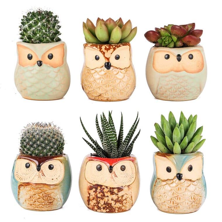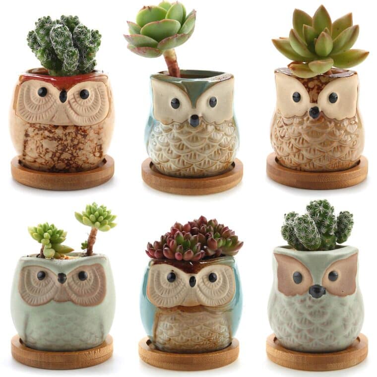 Owl, as a symbolic representation for wisdom, can be found as a decoration in a plethora of items. Plant containers are no exception to that. With six owls of various sizes, shapes, and colors, you will have more than an excellent home for your favorite plants. Made of ceramic, these non-glazed pots, though just items have a strong personality.