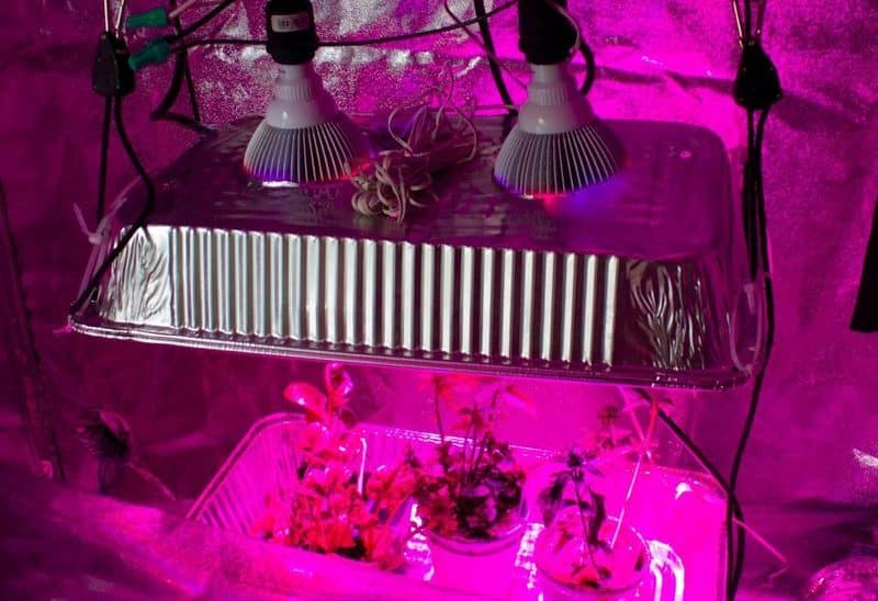 Also, when talking about evaporation, with LED lights, you can go with only one ventilation opening even in bigger tents because the air inside the tent won’t suffocate you as much as with HID lights.