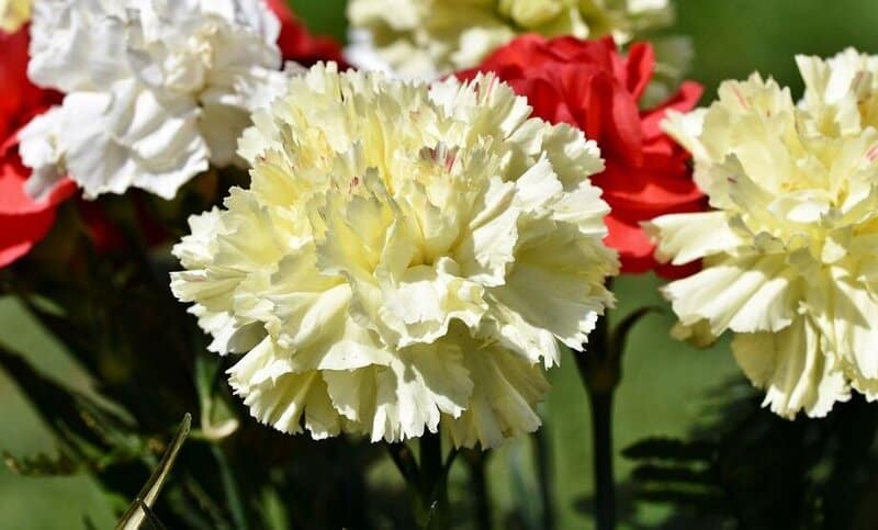Carnation is an erect slow-growing perennial that produces colorful flowers including yellow in mid-summer. It thrives in zones 6-8.