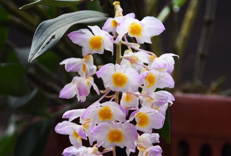 This is a free-flowering orchid that creates an explosion of color in your home. They have large, yellow blooms that appear between strap-shaped green leaves. Miniature cymbidiums are compact hybrids that can grow 60 cm tall.